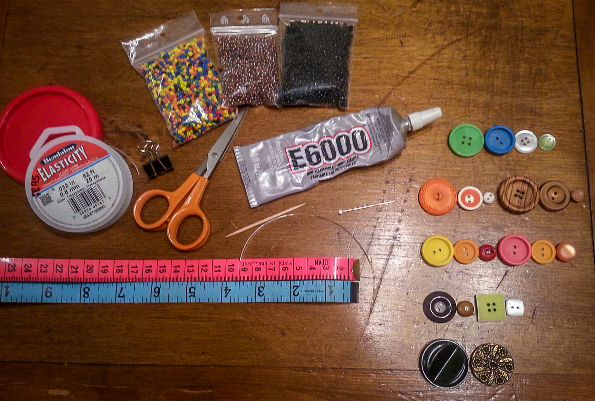- Small binder clip (to hold beads on end when stringing).