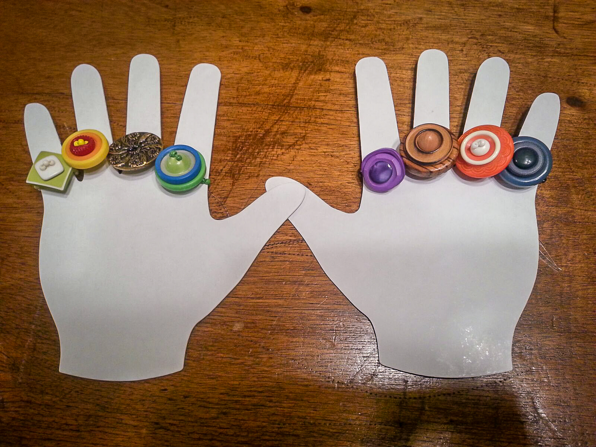 What is more fun for a woman or girl than to have a fun accessory to perk up a spring or summer outfit? Well, that’s what we’ll show you how to do in this week’s blog. Combining my interest in buttons and color, we’re going to make a ring or two and show several possibilities.