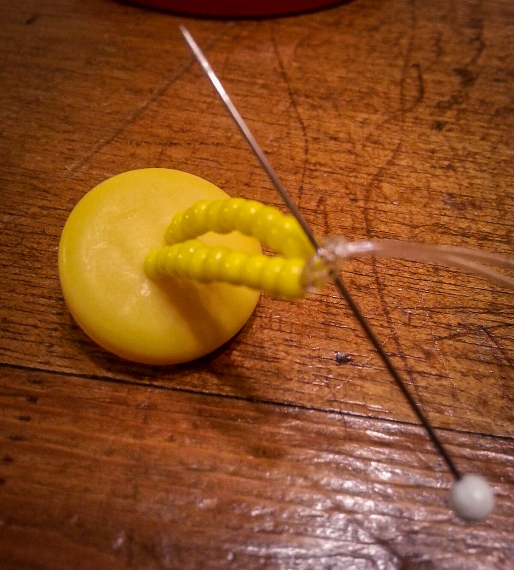 Use the glass beaded pin to “slide” the knot tight against the beads.