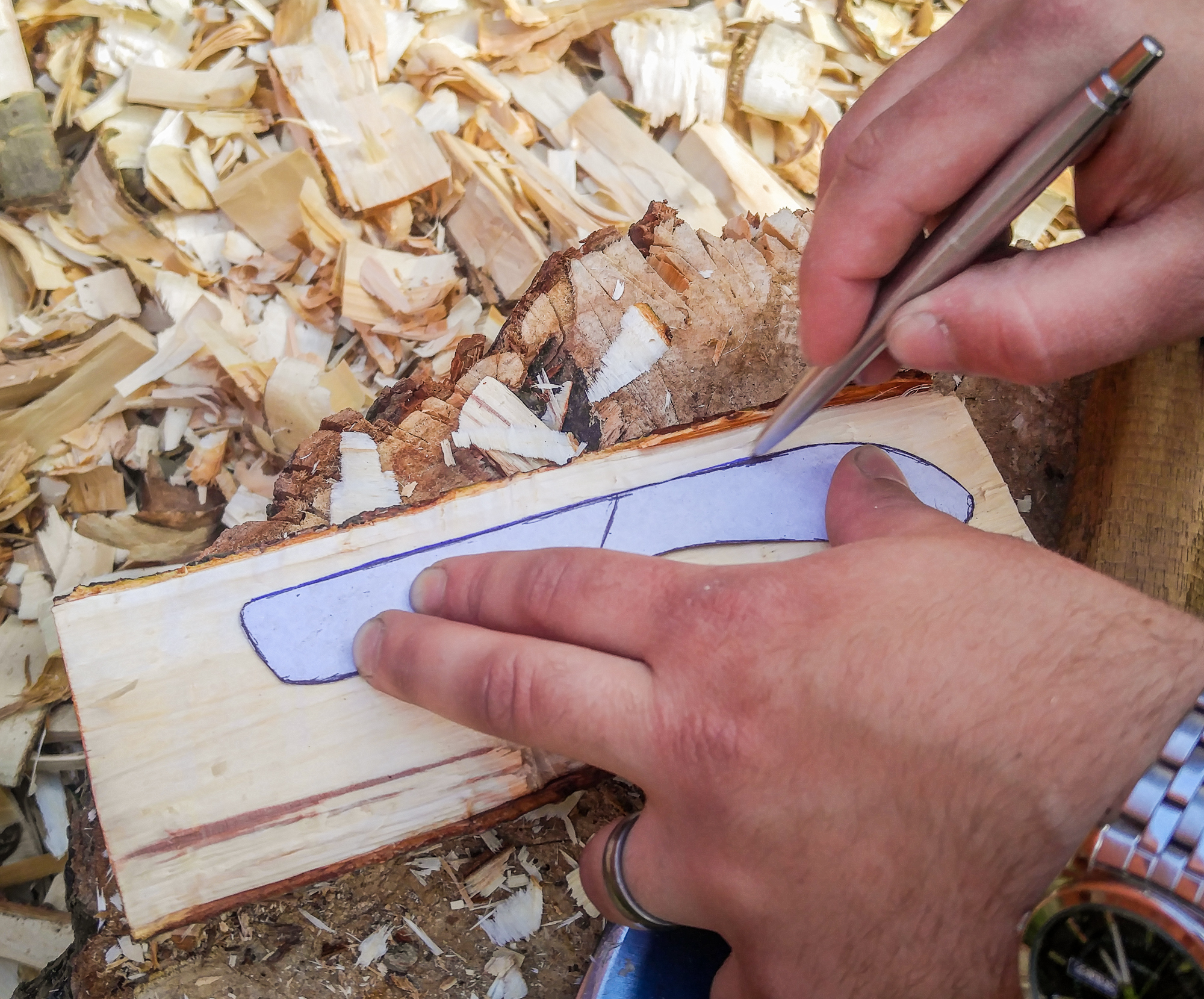 Finally, those with store bought wood can join the process. Start by drawing out your spreader, either on a piece of cardboard, or free hand onto the wood. Here I have chosen to draw onto cardboard, which will allow me to repeat this size and shape over and over.