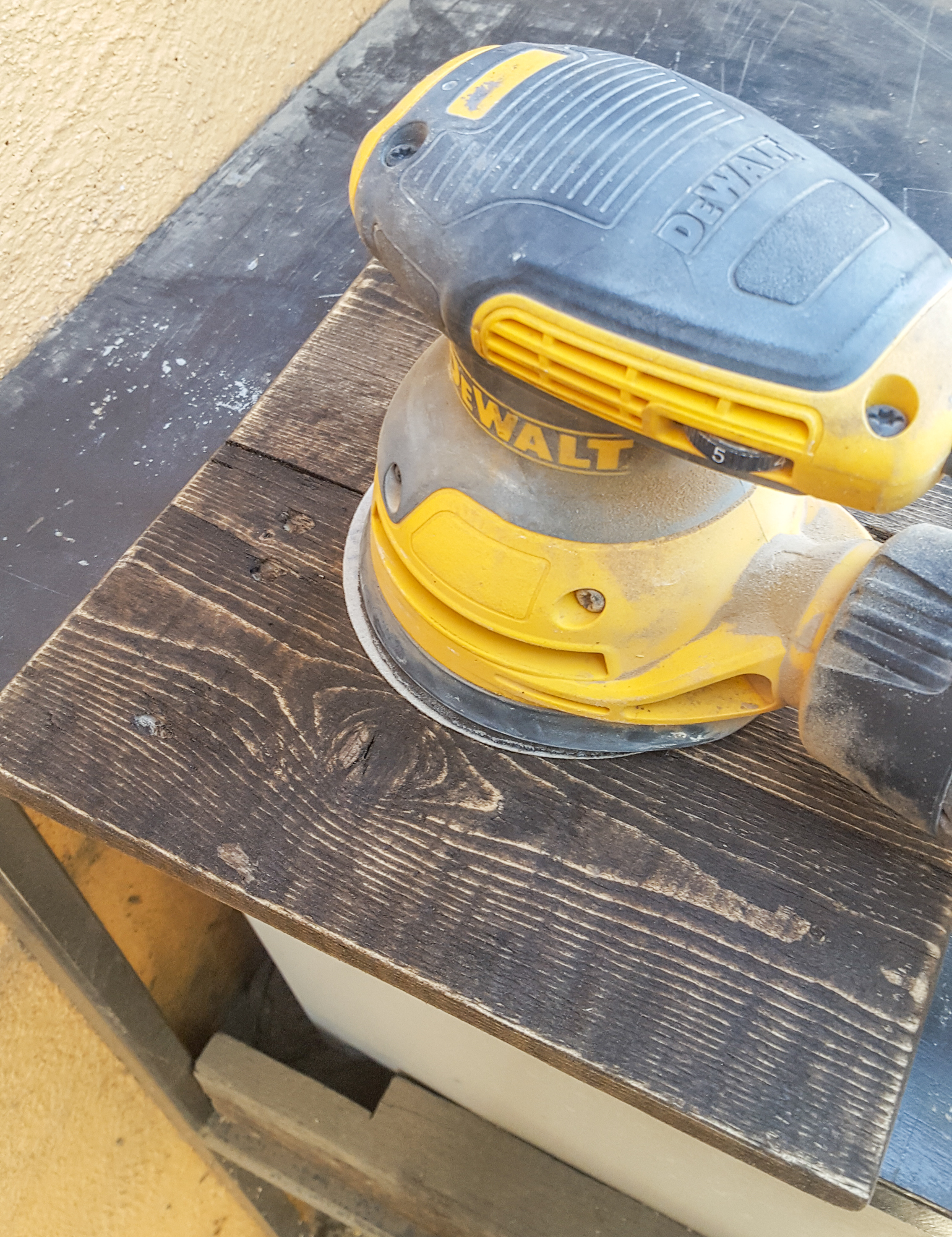 It’s sanding time! Grab a rougher sandpaper, like 80 grit, and sand down the entire piece thoroughly, making sure to get the rough edges smoothed out.