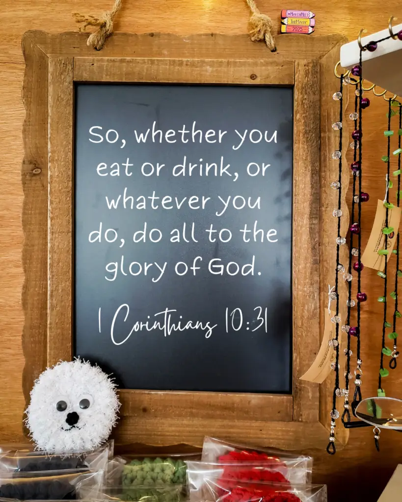 Since God’s glory is our religious convictions and the name of our business, it is our sole aim to bring Him glory in all things. This truth flows throughout the making and selling of our products. We desire to put our best work on the table (quite literally as the majority of our stuff is sold from the table at craft shows). If any of our products are in any way deficient, we will either discard them, keep them for ourselves, or sell them at a significantly discounted price and state the reasons why.