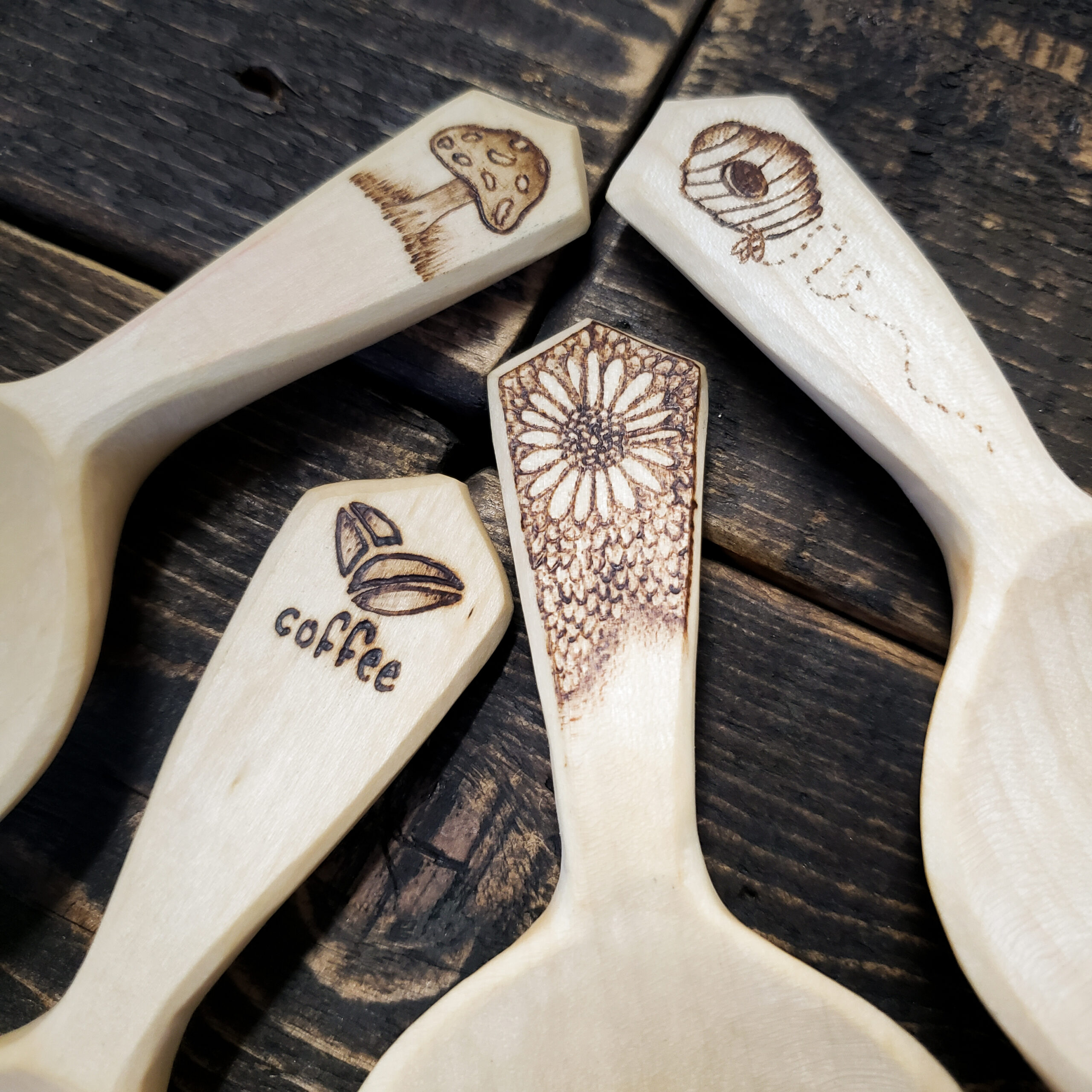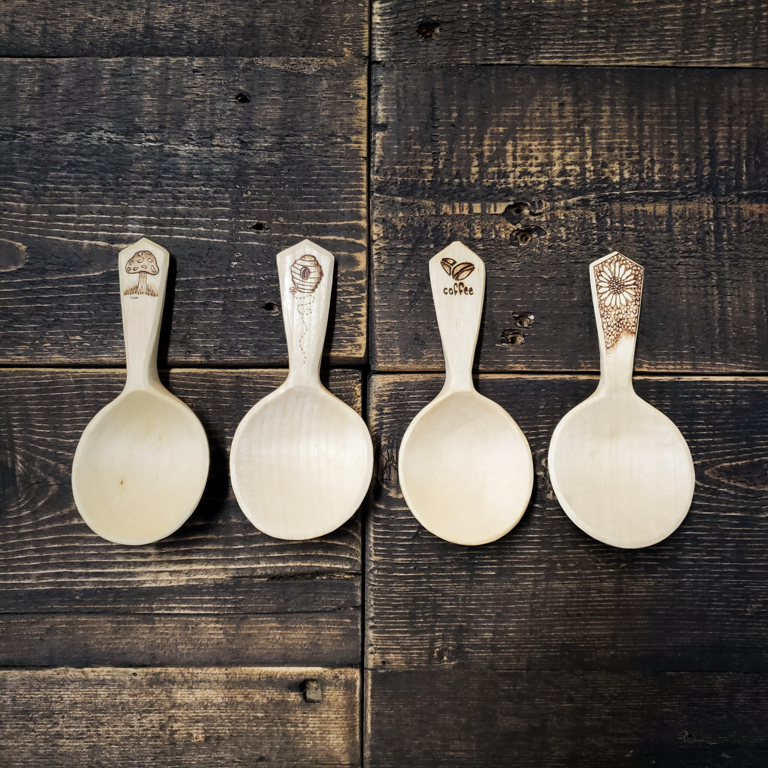 All our coffee scoops have been entirely hand-carved from various types of hardwoods and finished using natural, food safe, linseed oil.