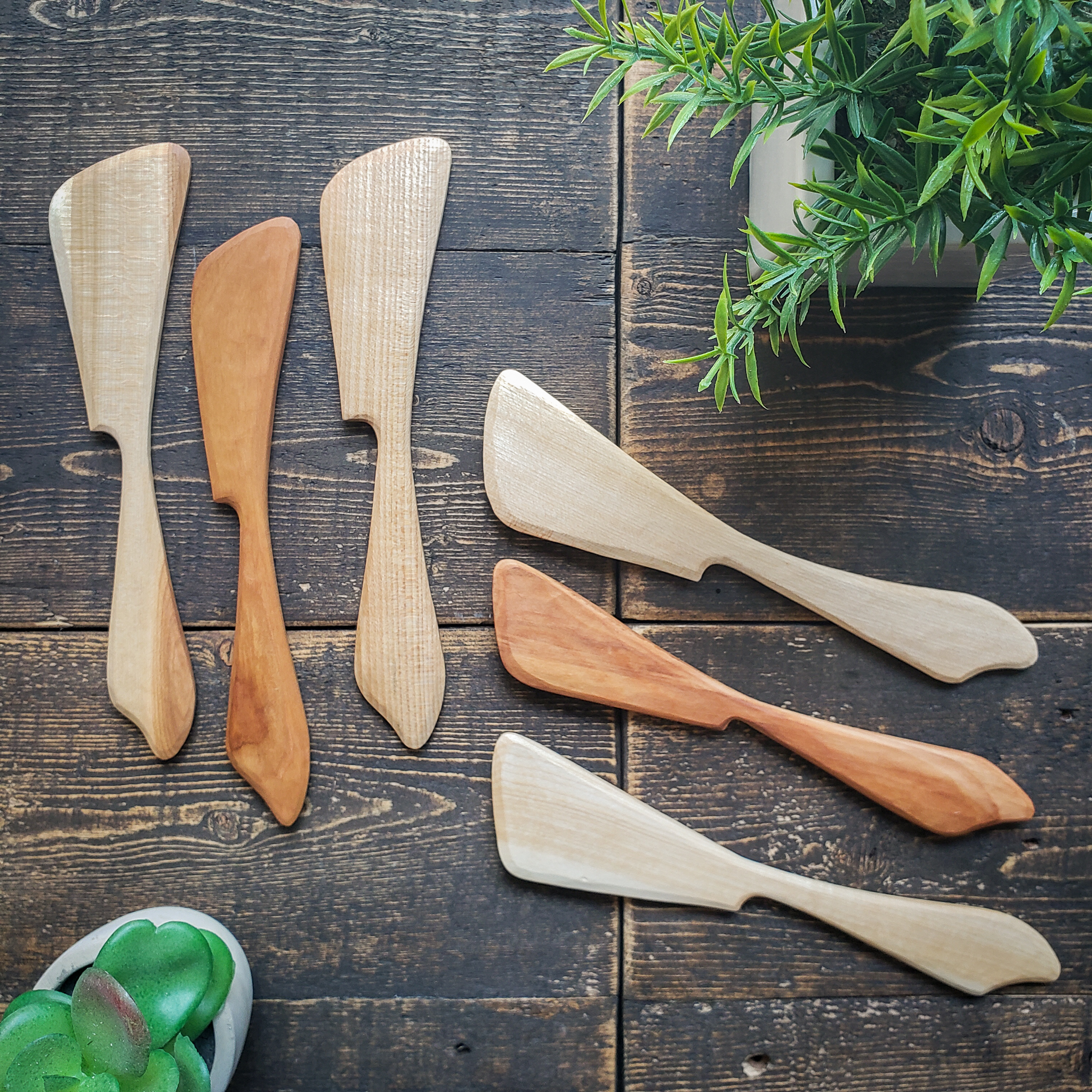 All our spreaders have been entirely hand-carved from various types of hardwoods and have been finished using natural food safe linseed oil.