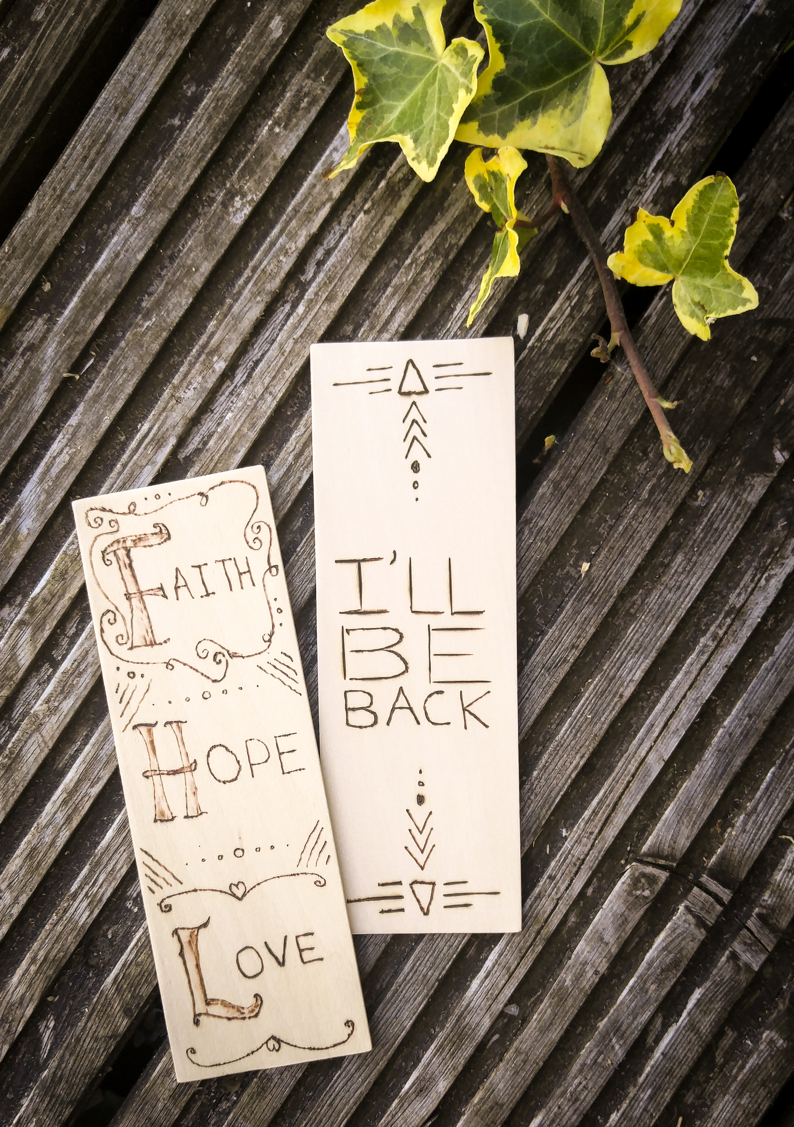 As you have previously read, Shaun’s new love for woodworking brought on a new hobby for me: pyrography. Spurred on by my love of typography, I burn designs and quotes into wood and cork.